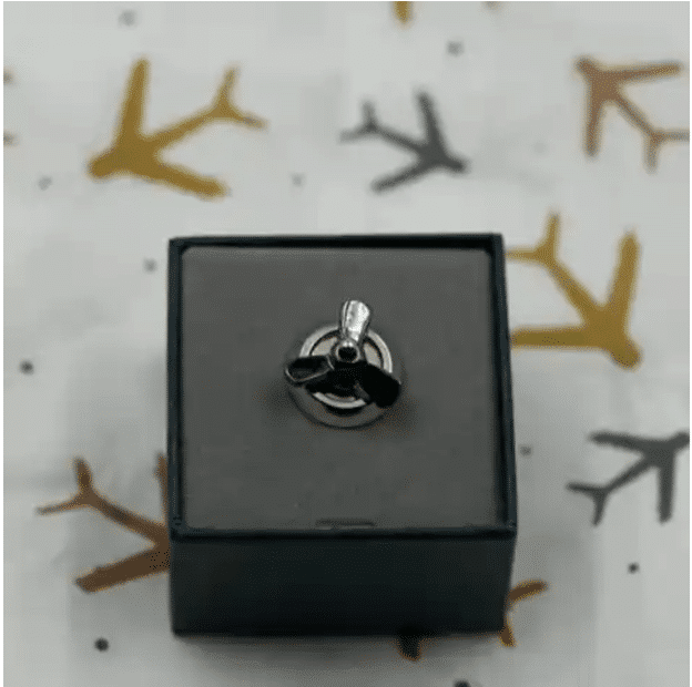 How do you tell people you’re a pilot without telling them you’re a pilot? Wear this eye catching Airplane Propeller Tie Tack or Lapel Pin! It’s the perfect accessory to add some aviation flair while on the job or off. The base is silver in color and the propeller is a metallic black.