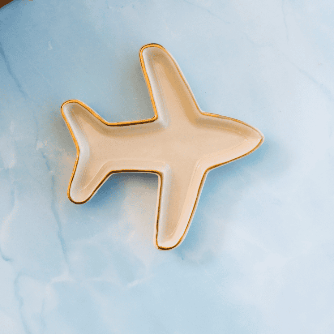 This airplane-shaped trinket bowl is a functional accent piece designed to add a subtle aviation touch to your space.