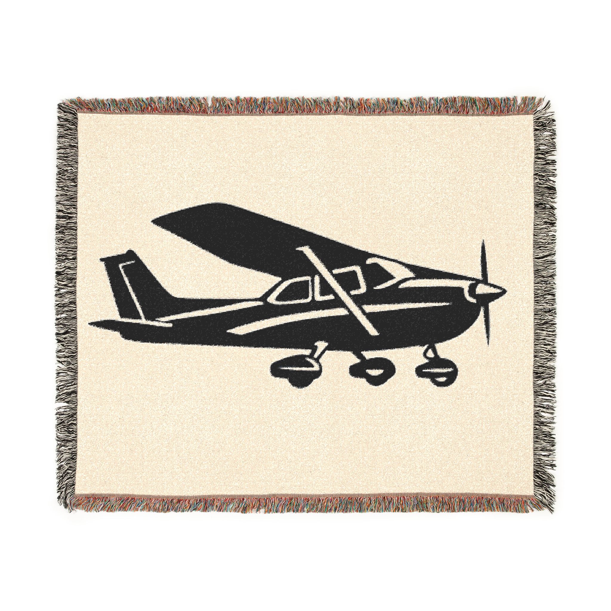 This woven blanket features a unique design of a nose wheel airplane, bringing a sense of adventure and travel to your space. Perfect for aviation enthusiasts or anyone looking to add a touch of whimsy to their home decor. Ideal for cozying up during chilly nights or adding a pop of color to a room. Relevant for travel enthusiasts, aviation fans, and those who appreciate unique, artistic home accents.