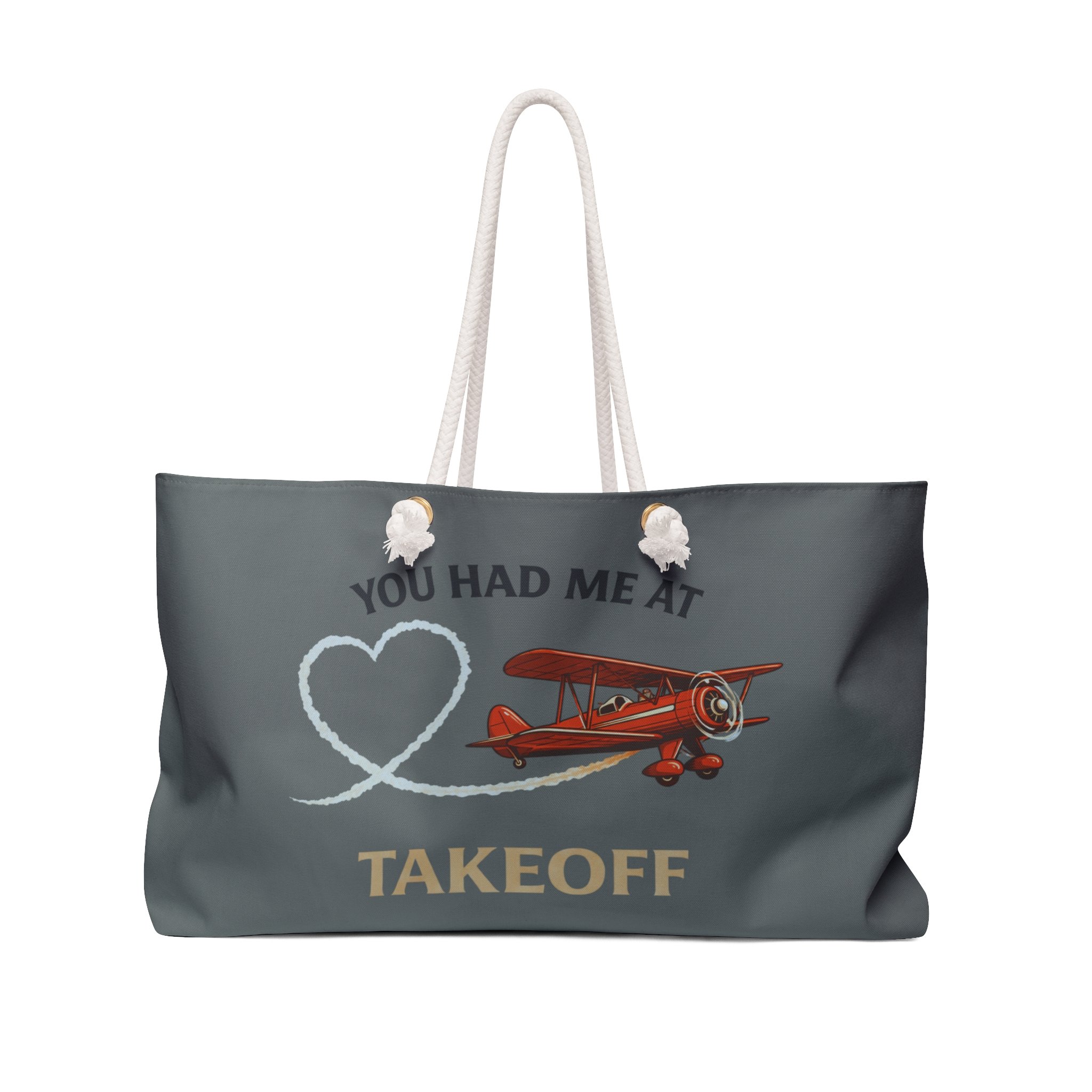 This aviation-inspired tote bag is perfect for anyone whose heart belongs in the sky. Featuring a vintage biplane flying a heart-shaped smoke trail, this design is a must-have for pilots, aviation lovers, flight crew, and anyone who knows that love starts at takeoff.